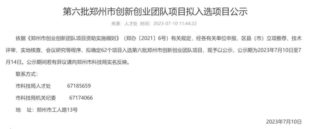 公示网址://zzkj.zhengzhou.gov.cn/tzgg/7622450.jhtml
